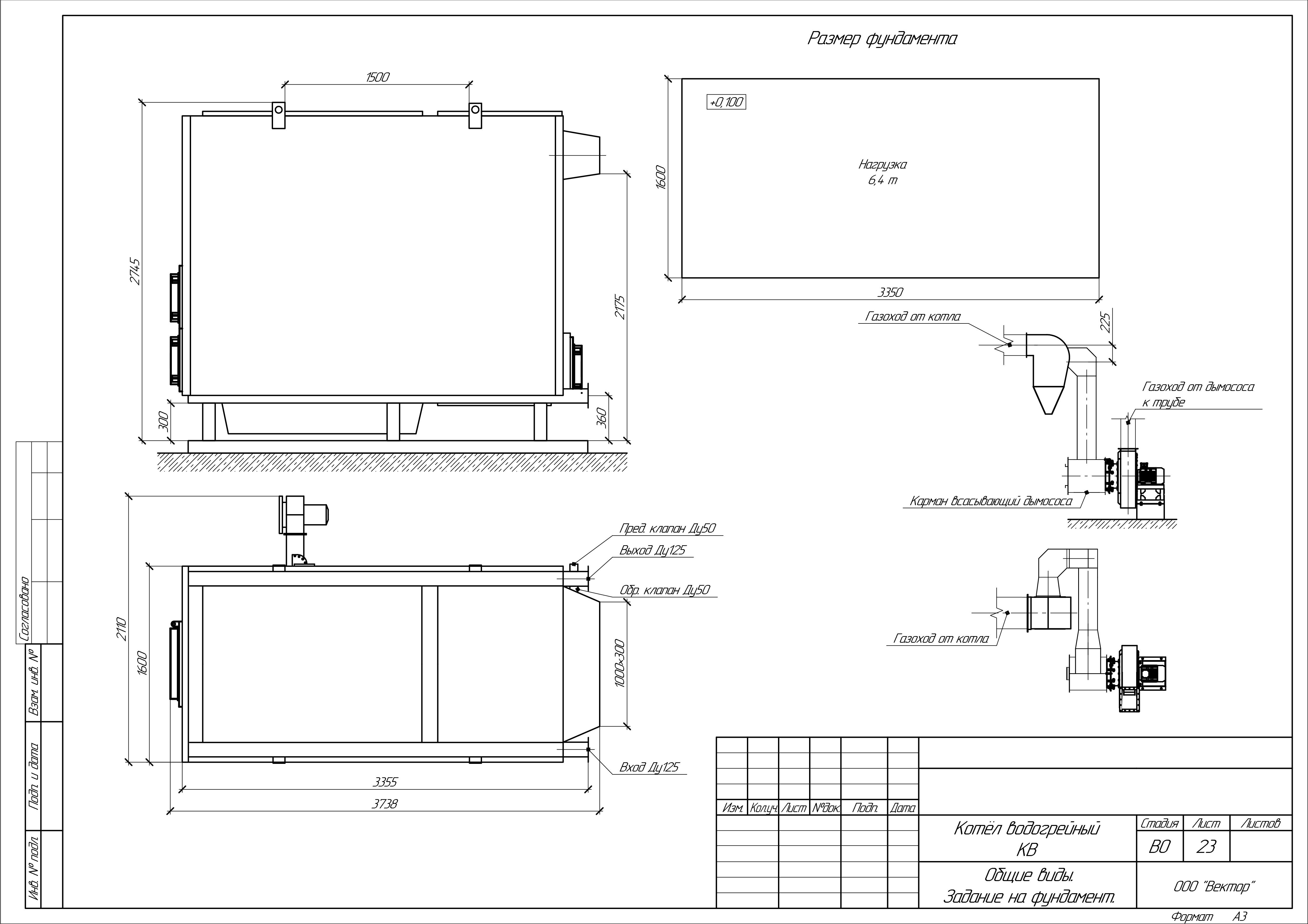 Масса котла (без воды): 6400 кг