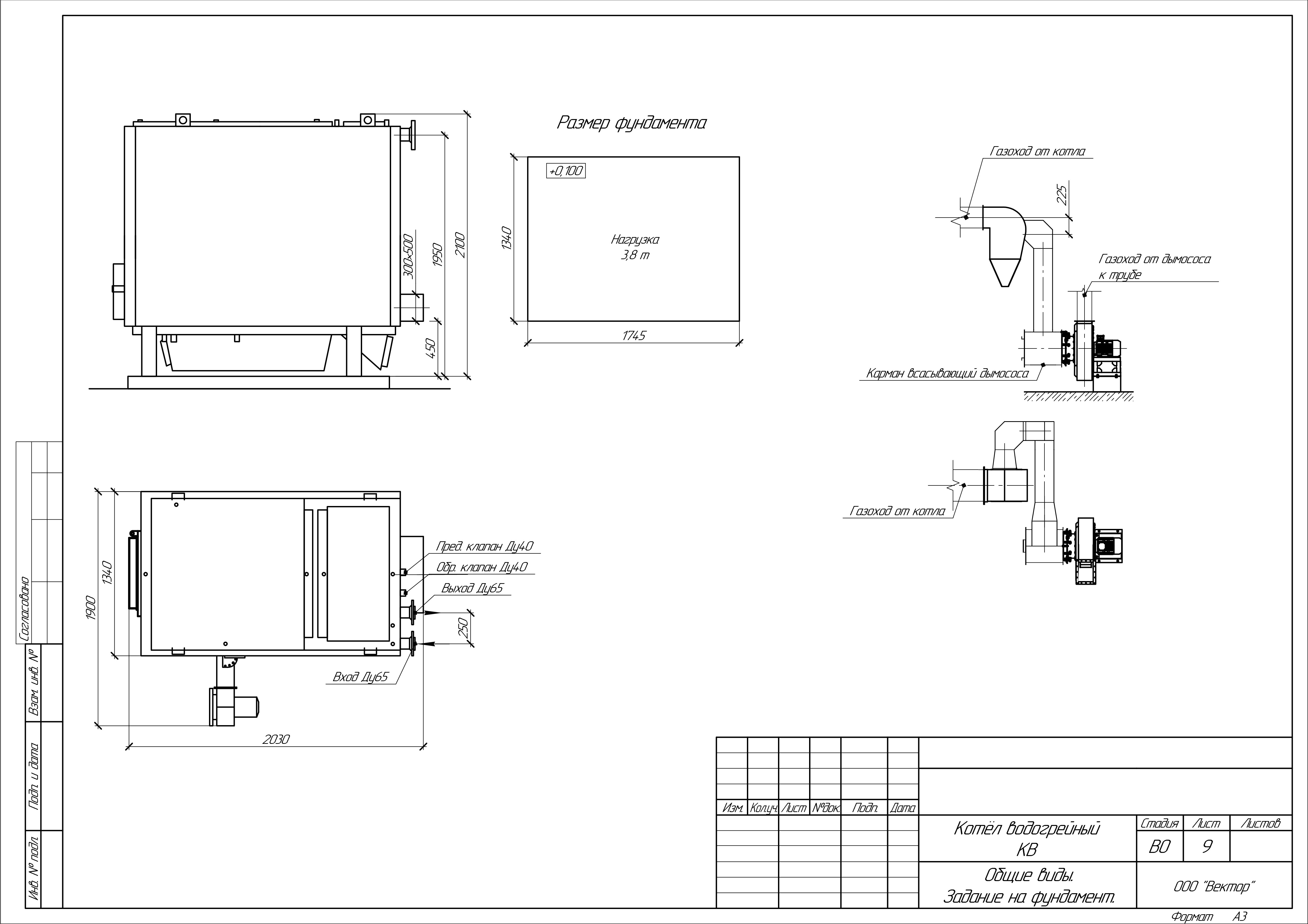 Масса котла (без воды): 2200 кг